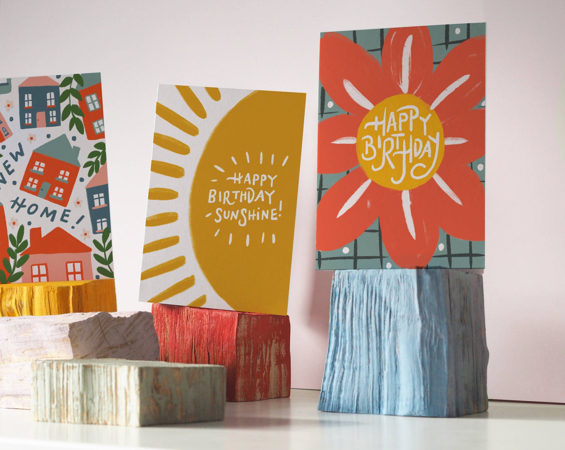 A fun illustrated card for sending wedding day love, with a bold pastel flower design.