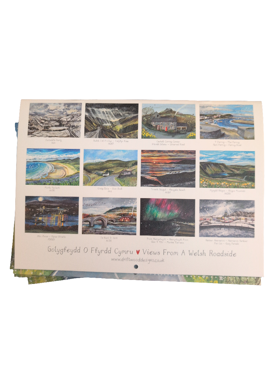 Our 2026 Wales Calendar features beautiful views from roadsides all around the Wales. From the iconic ‘Elvis Rock’ in mid Wales through to lesser-known views such as the Rhigos Mountains. Lizzie has illustrated a collection of our diverse landscapes and seascapes, capturing the transformations of nature across the seasons.